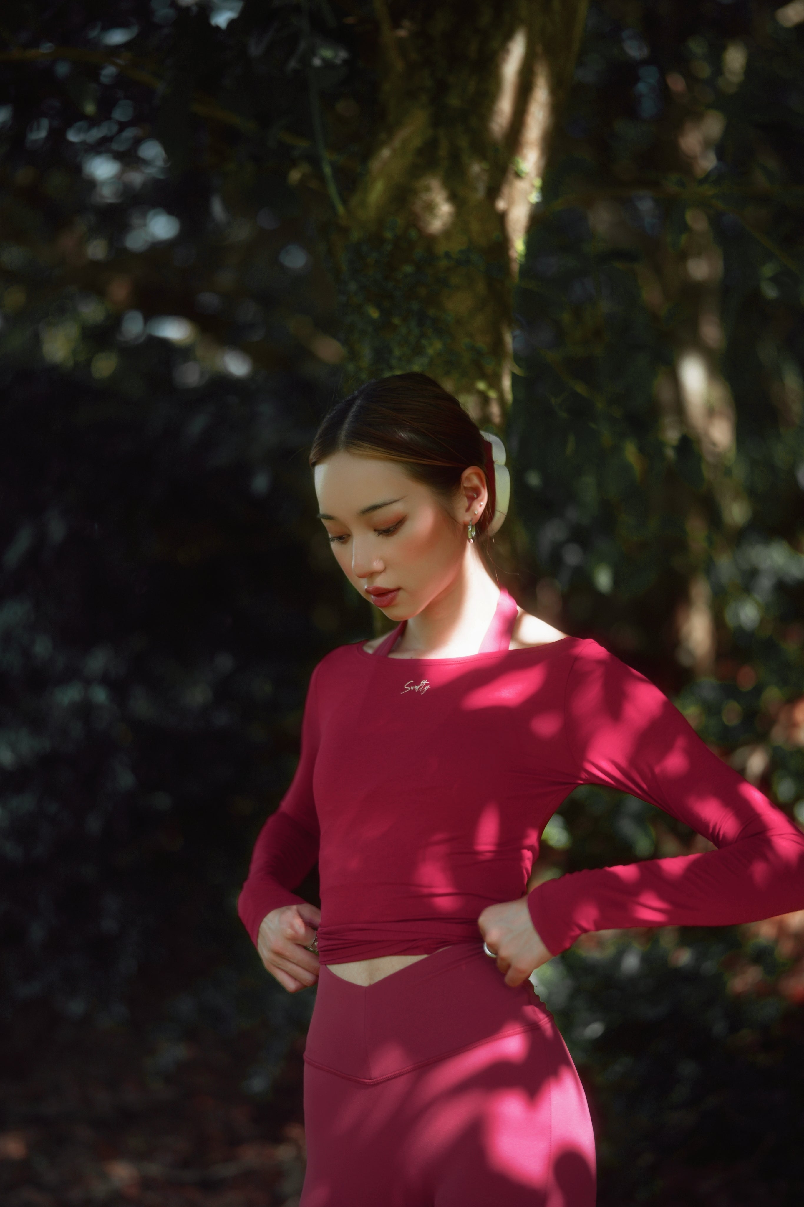 Balletcore 藝術氣場: 醇厚的酒紅色不挑膚色,且自帶一種藝術策展人的高級質感。無論是在瑜珈教室暖身,還是在城市街道穿梭,這款罩衫都能讓妳散發出 Sporty & Elegant 的獨特魅力。