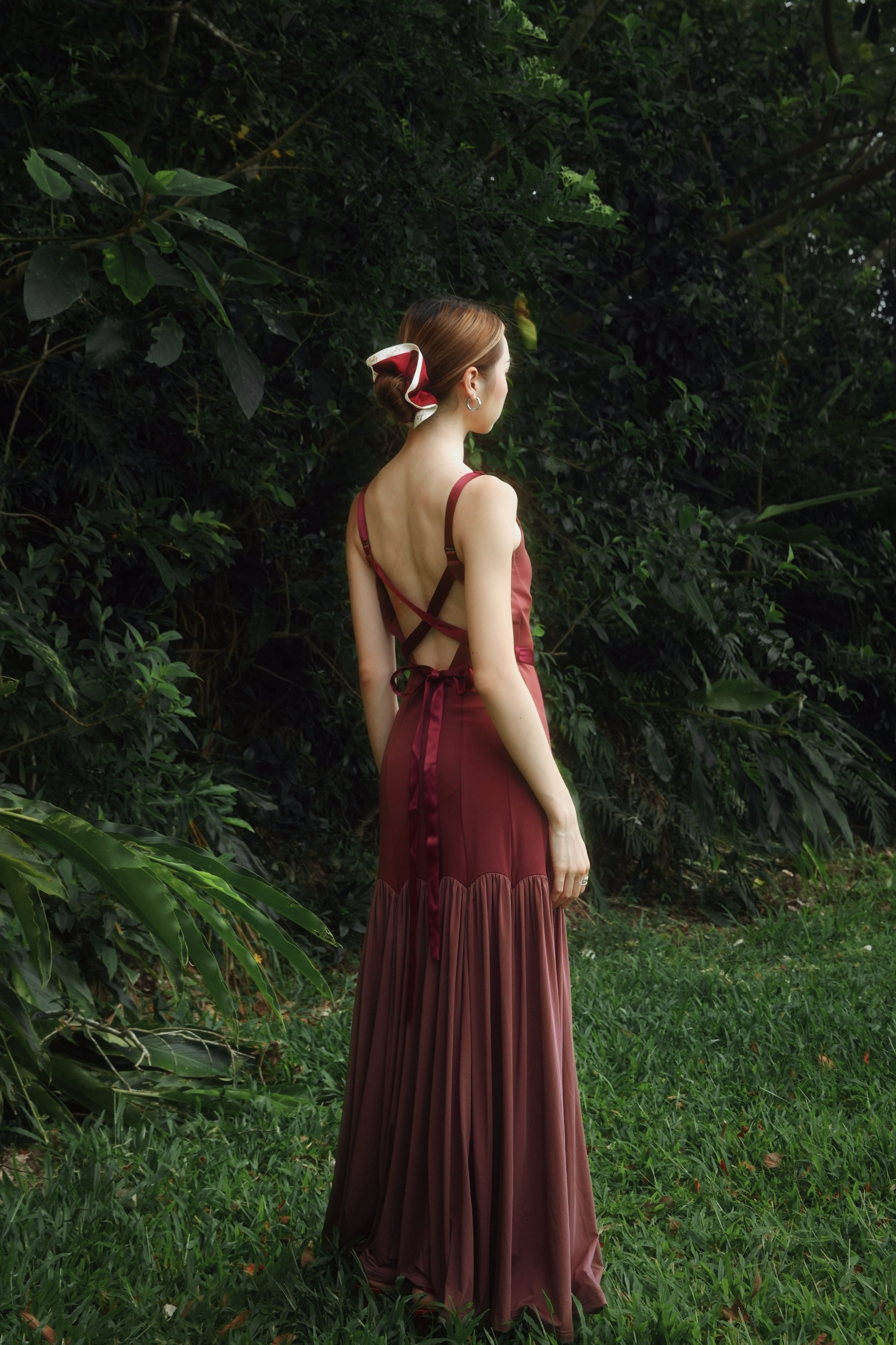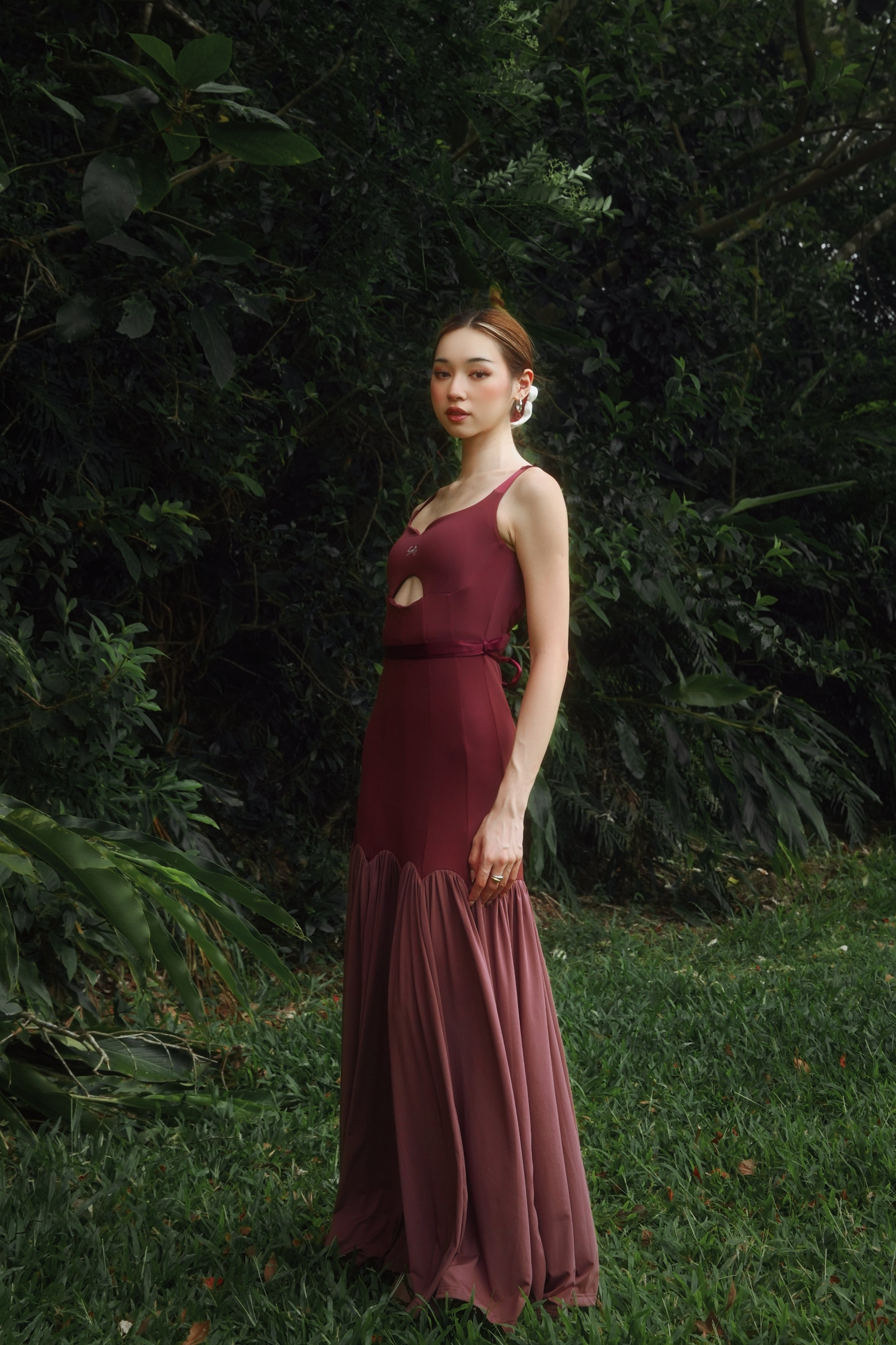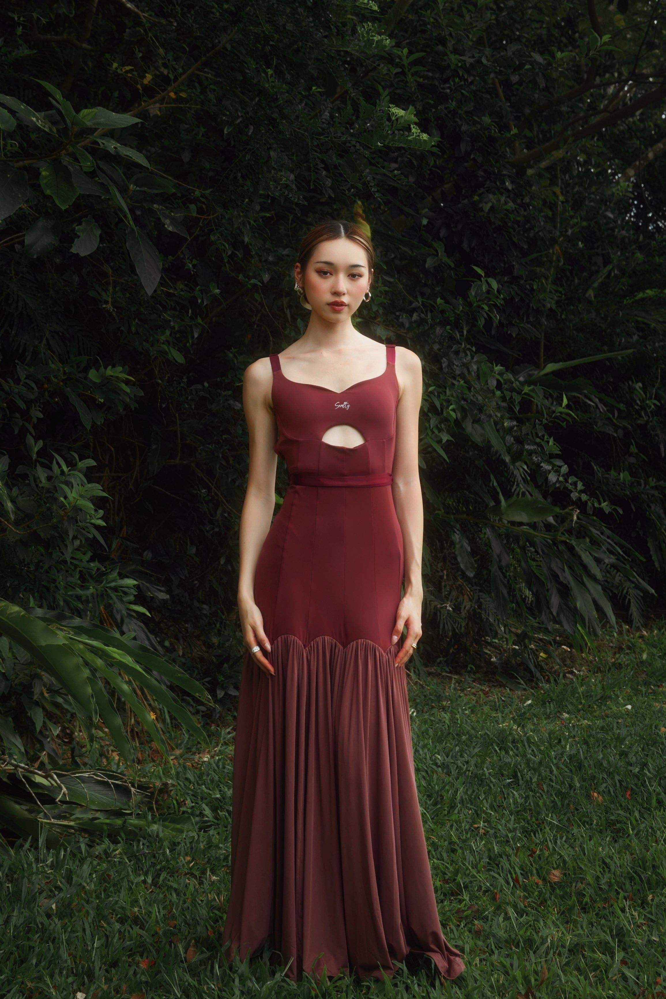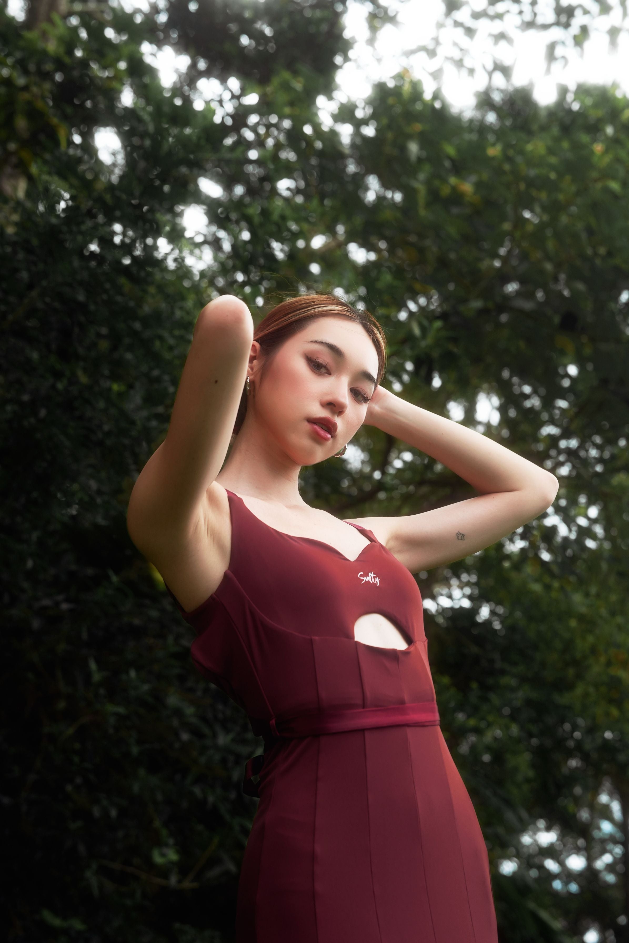 Cut-Out Waist Backless Maxi Dress | 醇厚酒紅:解構主義腰部挖空美背長裙