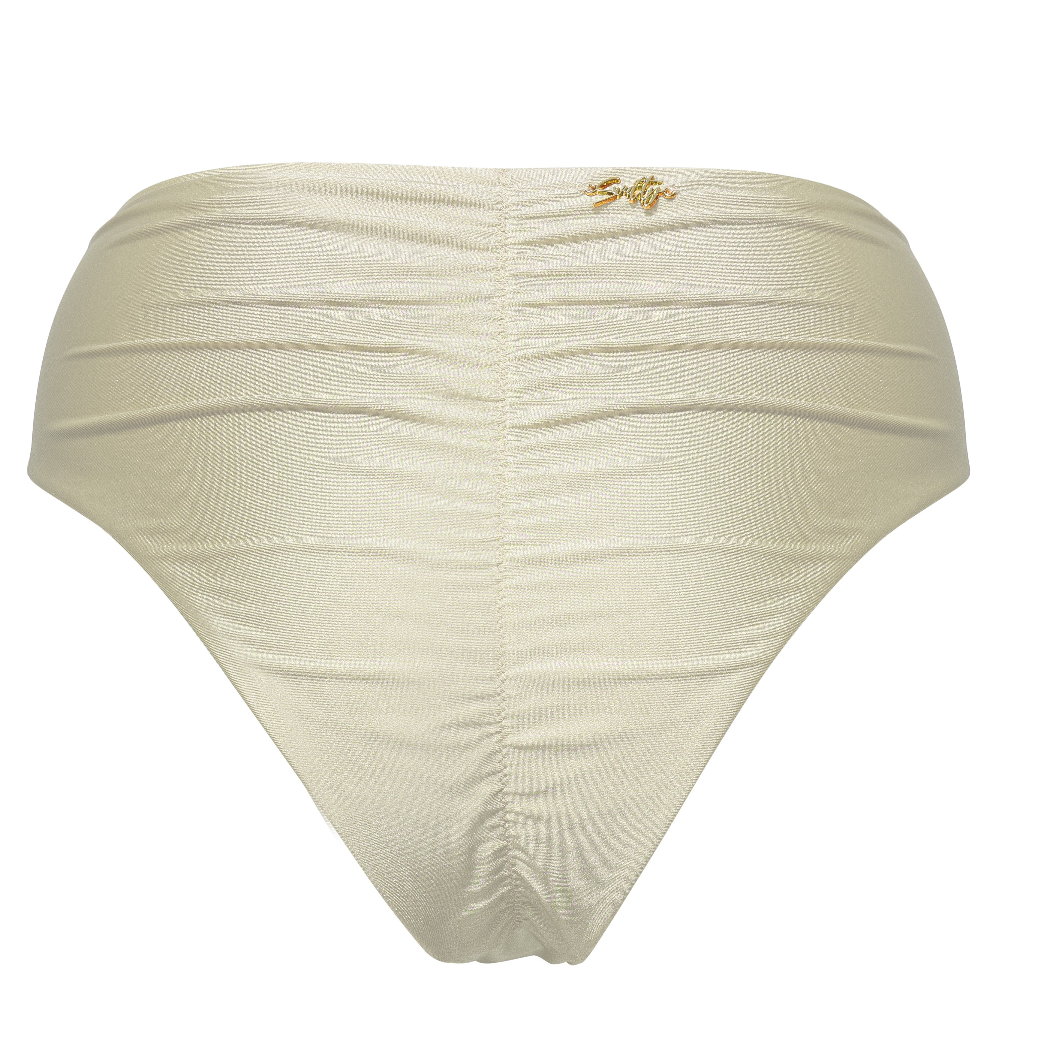 The high-waisted design bottom elongates your legs and waistline. The fun part of it is the hollow design at the front with a eye-catching pearl, making you the spotlight under the summer sunshine. The well crafted folds of the back sculpt our bum to be fuller and bigger.