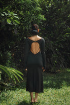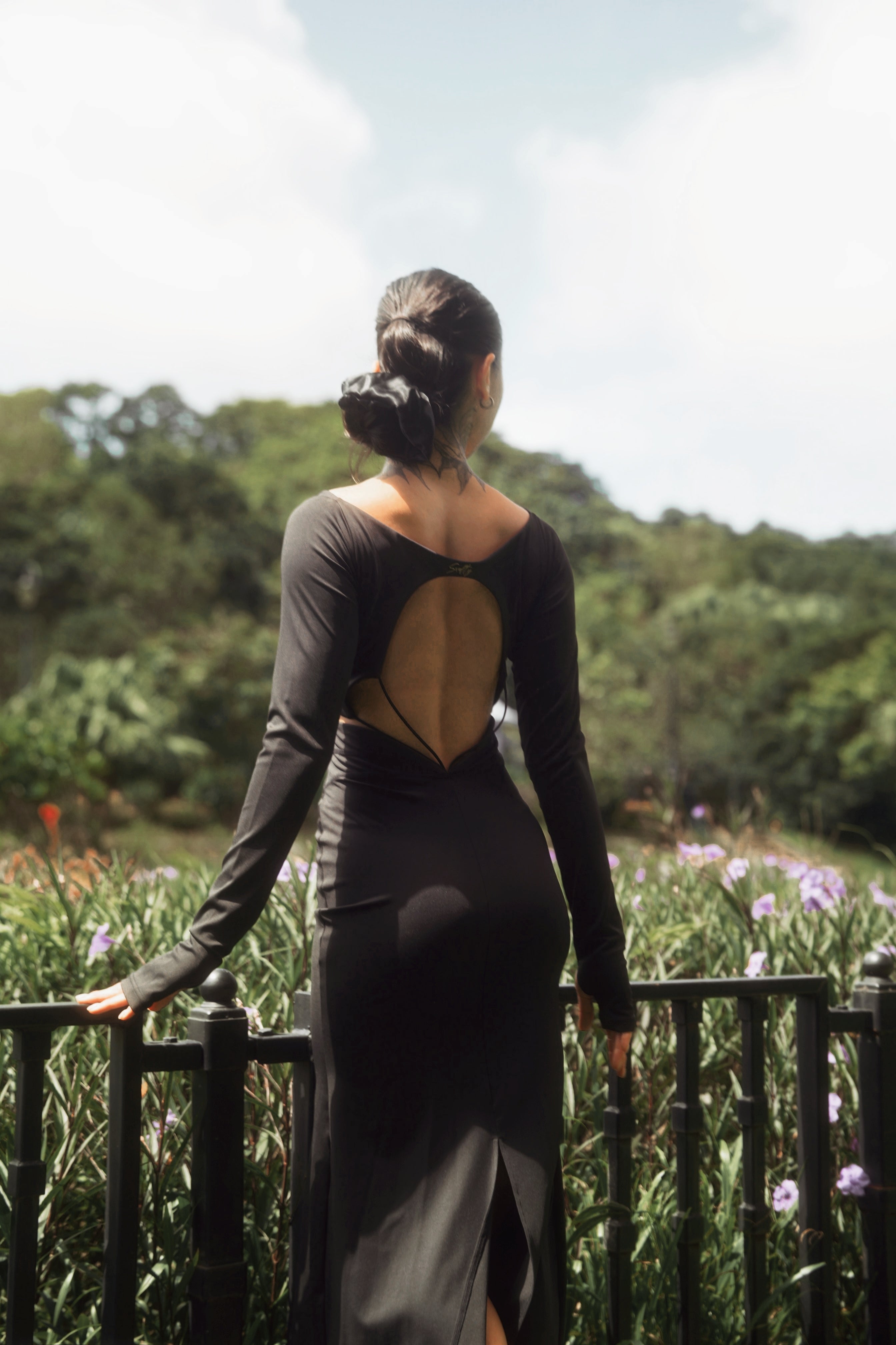 The Magician – Black Long Sleeves Backless Dress,如一場精彩的魔術表演。從正面看,利落且沉穩;轉身之後,露背設計驚艷登場,令人目不轉睛。這一場「消失的魔法」大膽而性感。長袖設計平衡了優雅感。
