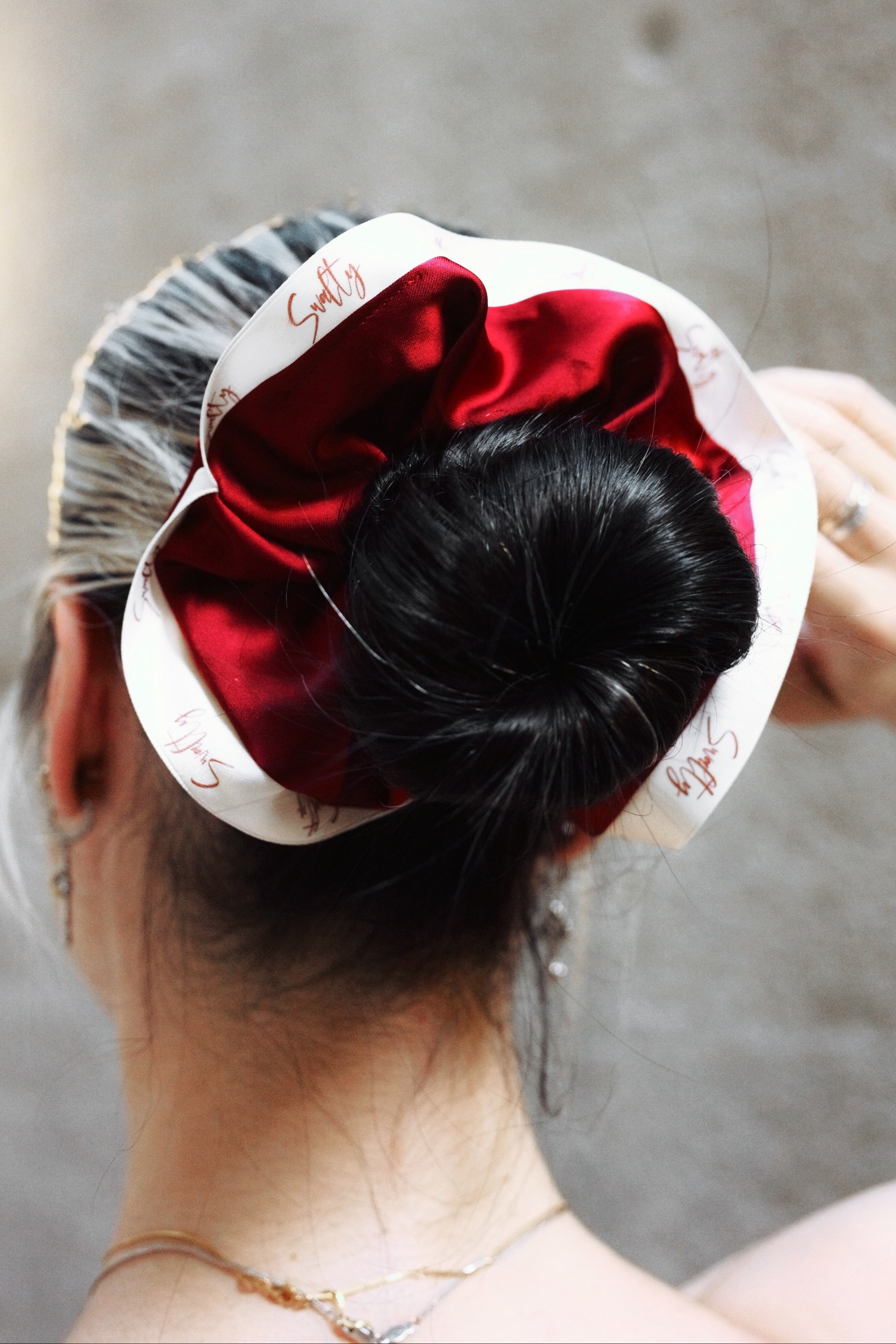 Signature Red Scrunchie | Classic Red: Satin-finish scrunchie - a hair-friendly styling tool that won't damage your hair.