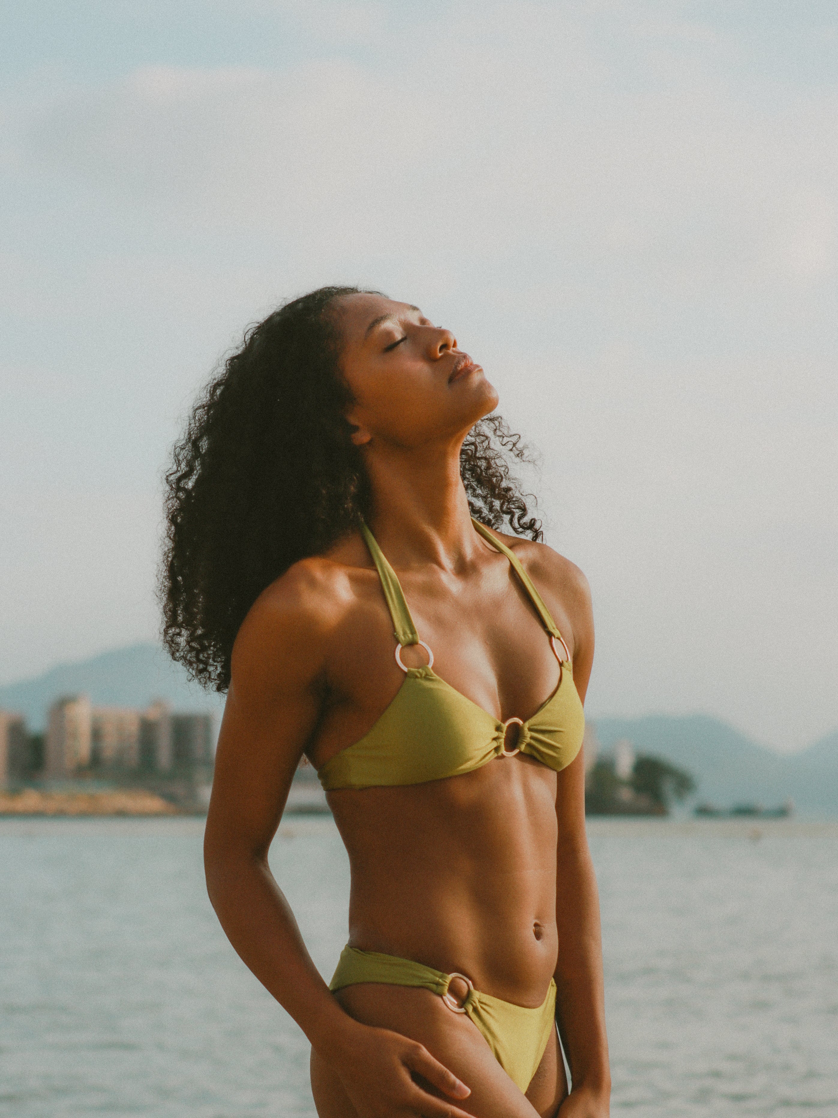 Matcha Macaron - Bottom | Matcha Macaron: Retro-style mid-waisted, comfortable and flattering swim trunks; a skin-brightening, nude-feel bikini.