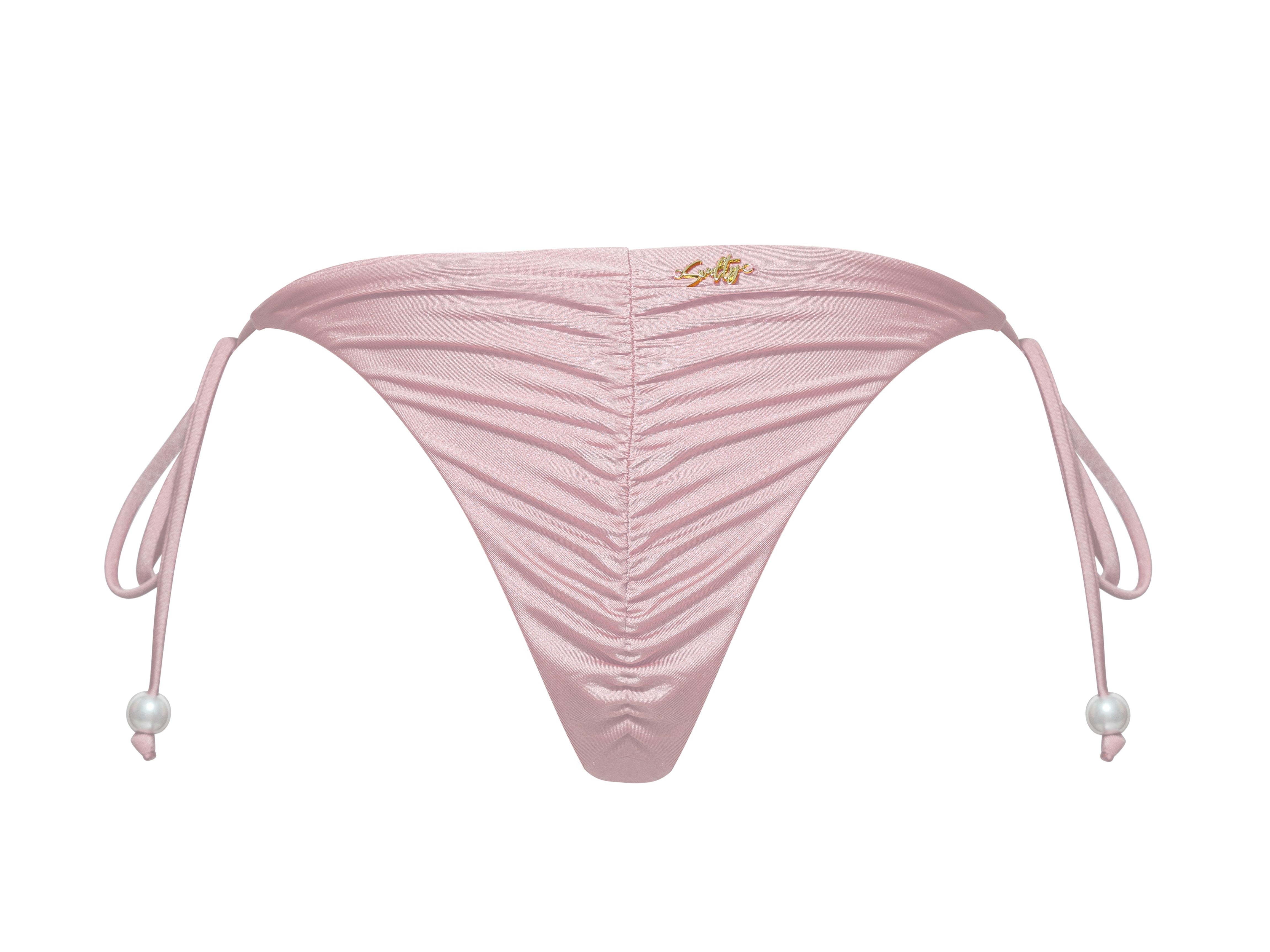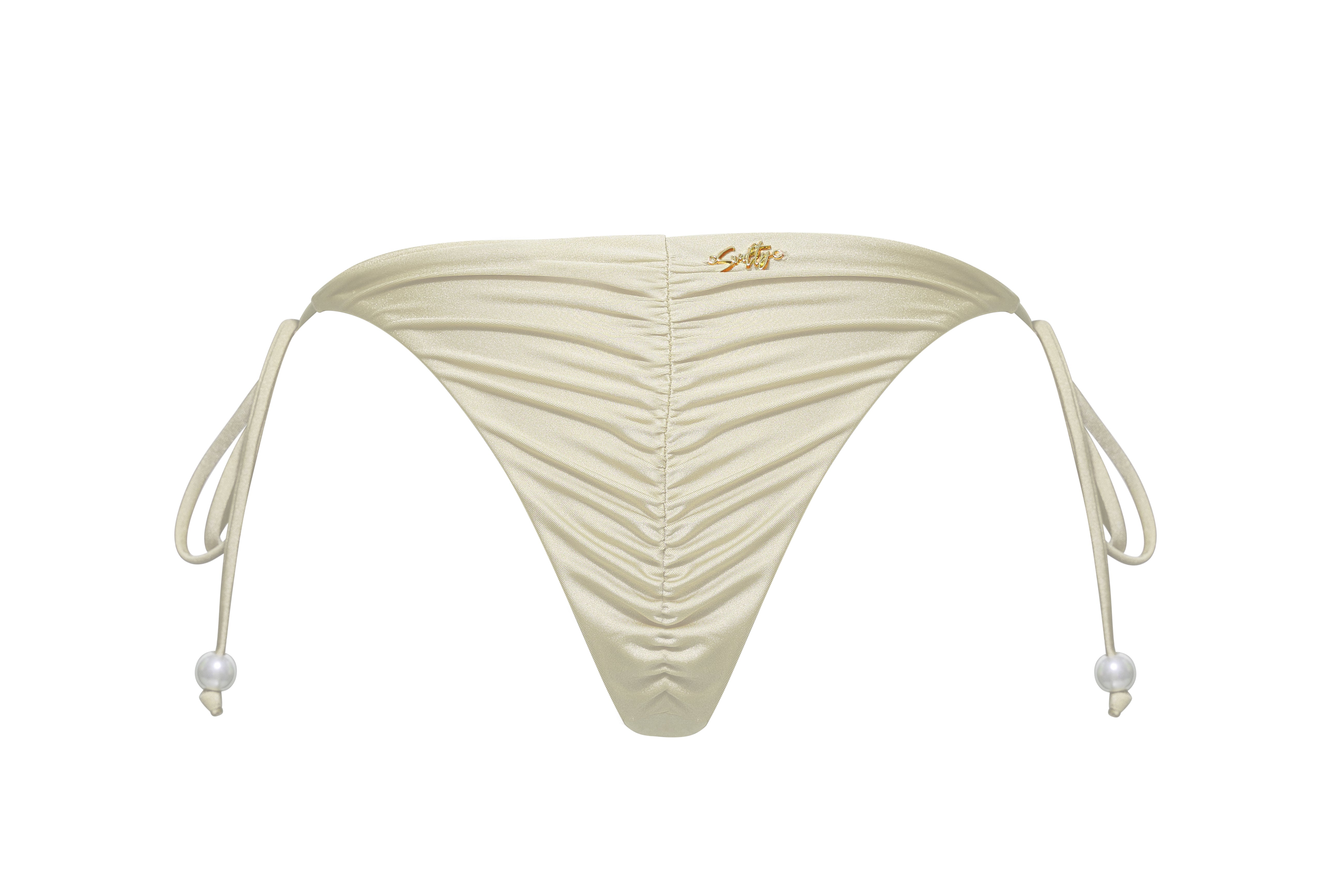 Cream Cheese Pie - Bottom | High-cut swim trunks with pearl buckle embellishments - French-style elegant bikini that visually lengthens the legs and brightens the complexion
