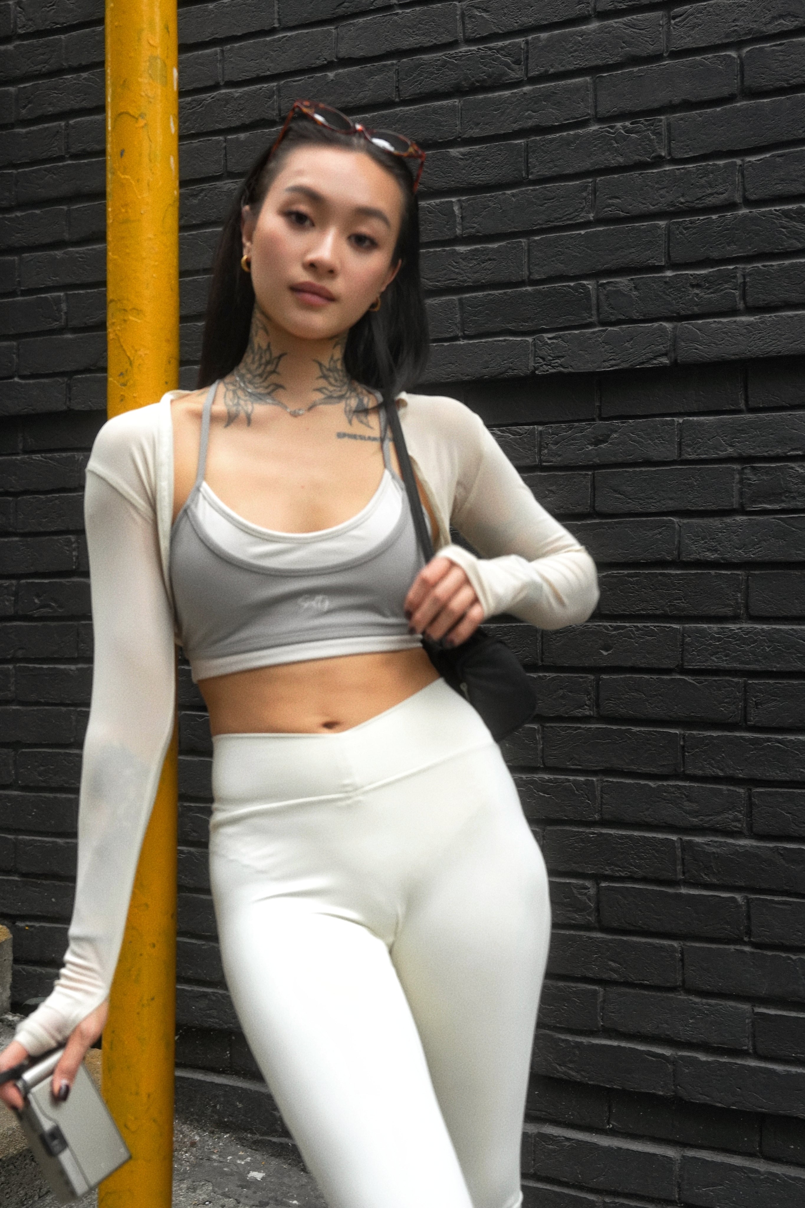 Beige See-Through Bolero 如輕風般優雅輕盈。精緻而舒適的半透面料,為整體造型增添一抹夢幻感,米色基調簡約且百搭,無論搭配裙裝還是上衣,皆能散發出神秘又高貴的氣質。